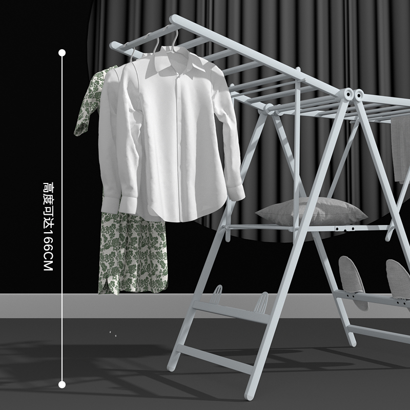 Kareqi Aluminum Alloy Floor Clothes Hanger Folding Indoor Multifunction Sun-hanger Balcony Sunburn by Home Cool hanger