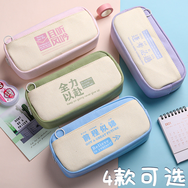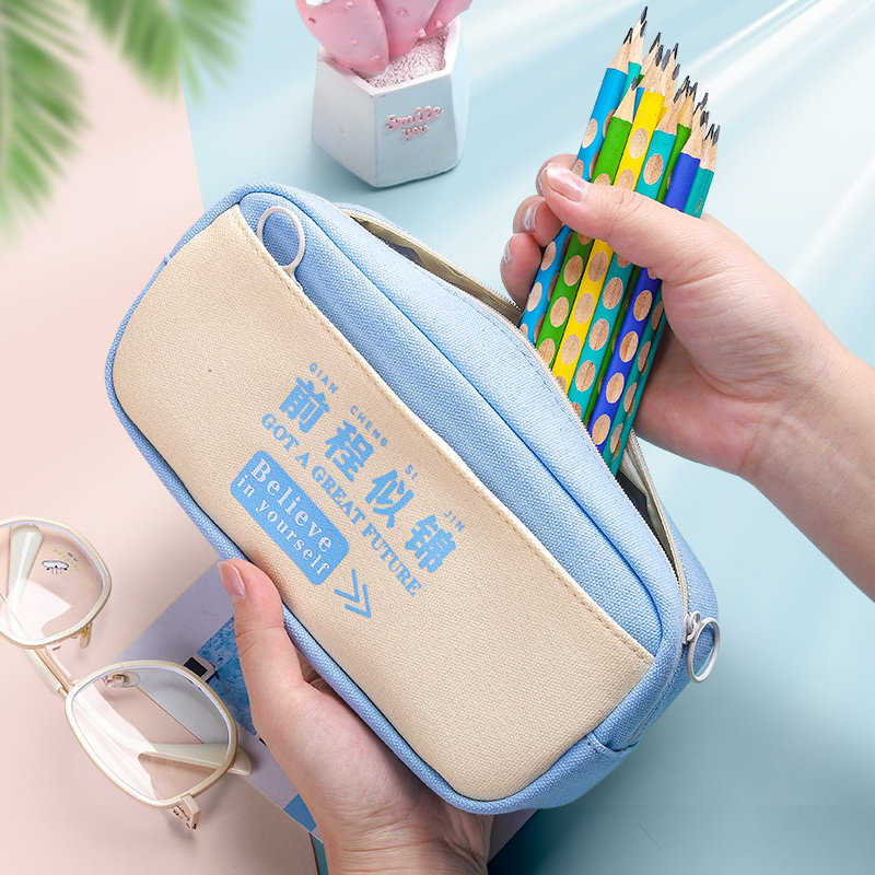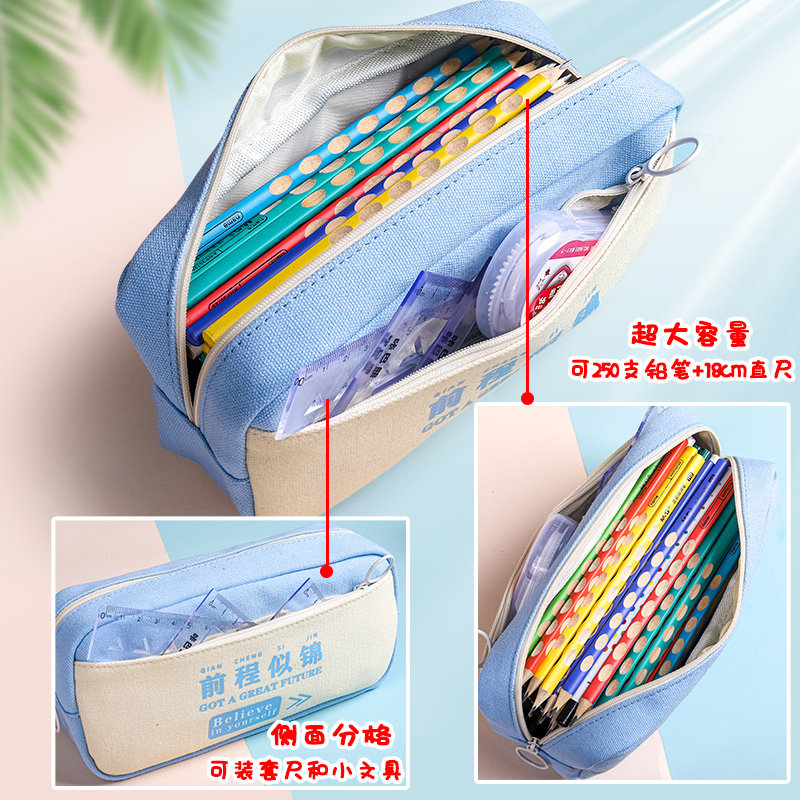 Double-layer pencil bag boys primary school stationery box simple pencil box stationery bag ins Japanese 2022 new popular middle school students large-capacity pencil bag junior high school high school girl version high value