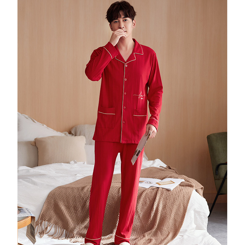 Pure Cotton Wedding Couple Sleepwear New Wedding Suit Spring Autumn Red Men and Men New Weddings New Weddings Wedding Ladies Winter Wear