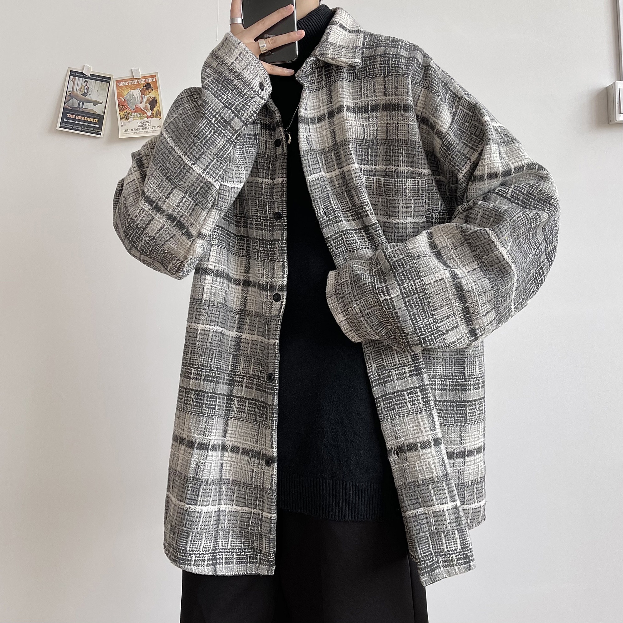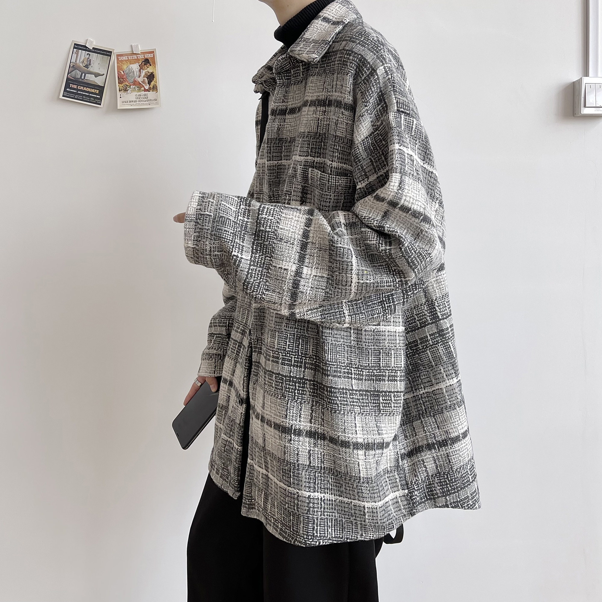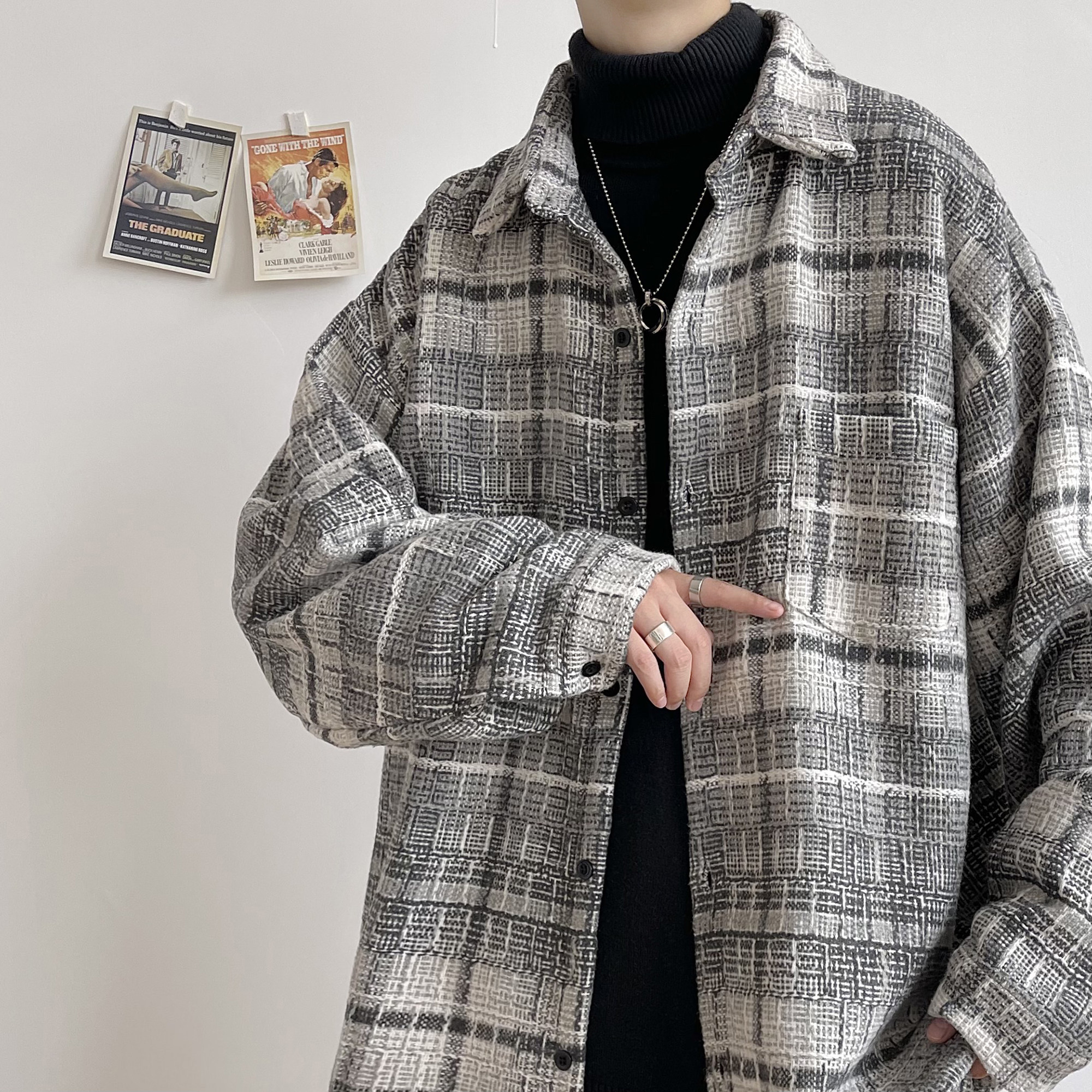 2021 autumn and winter new style brushed thick long-sleeved shirt men's Korean version trend loose Hong Kong style Japanese shirt jacket