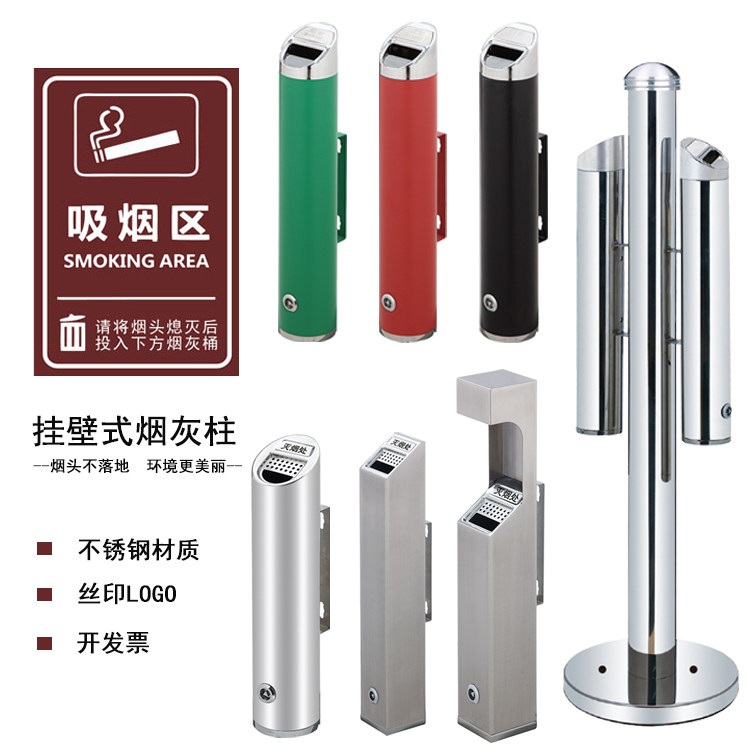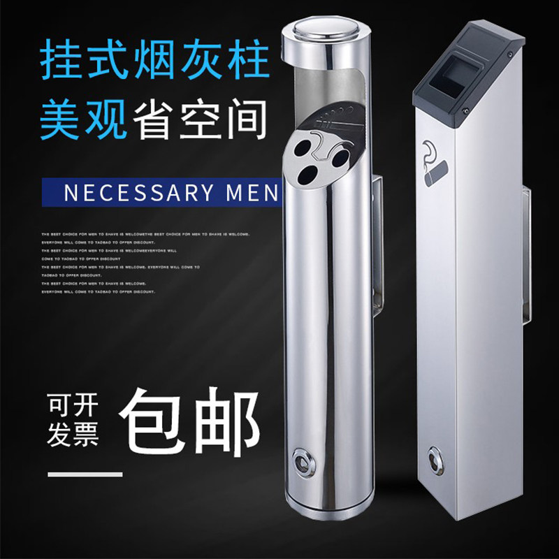 Outdoor stainless steel wall-mounted smoke extinguishing ash column Indoor hanging smoking area cigarette butt storage and collection ash tube