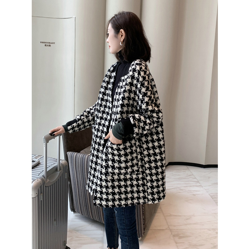 Japanese light extravagant thousand bird grid woolen coat women's long model 2021 New European station thick temperament woolen coat