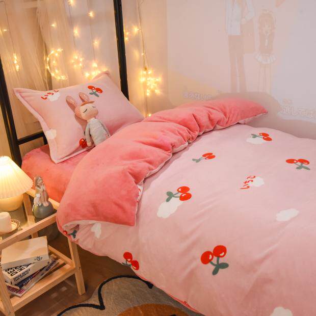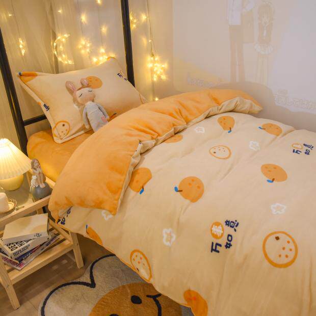 Winter coral velvet three-piece set of four student dormitory single bed flannel thickened plus velvet winter bed sheet quilt bed