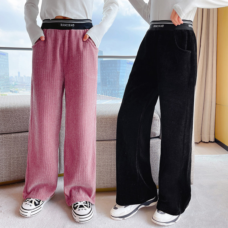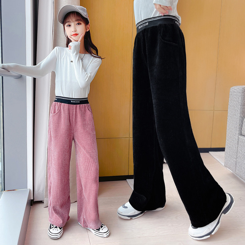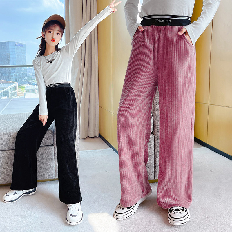 Girls' Pants Spring and Autumn Girls Spring Big Children's Casual Outerwear Spring Corduroy Pants Spring Clothes Children's Wide Leg Pants