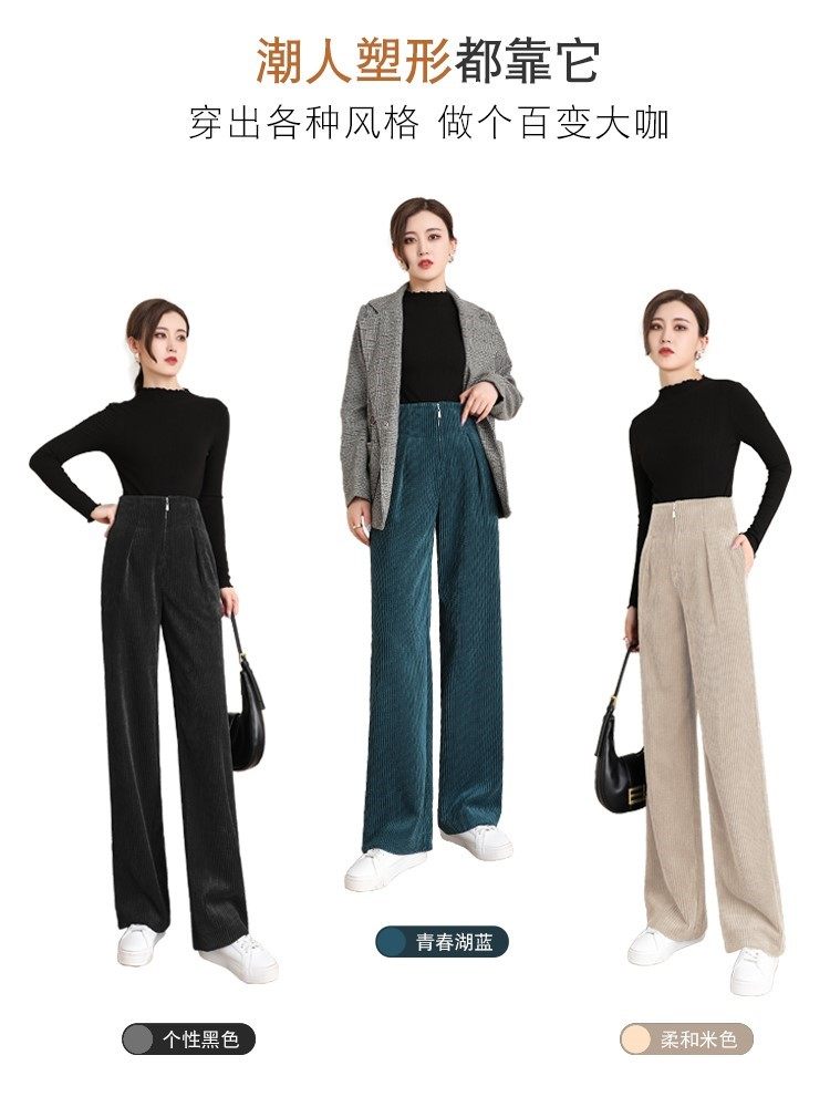 High-waisted velvet wide-leg pants women's 2022 autumn and winter new Korean version fashion plus velvet straight corduroy trousers