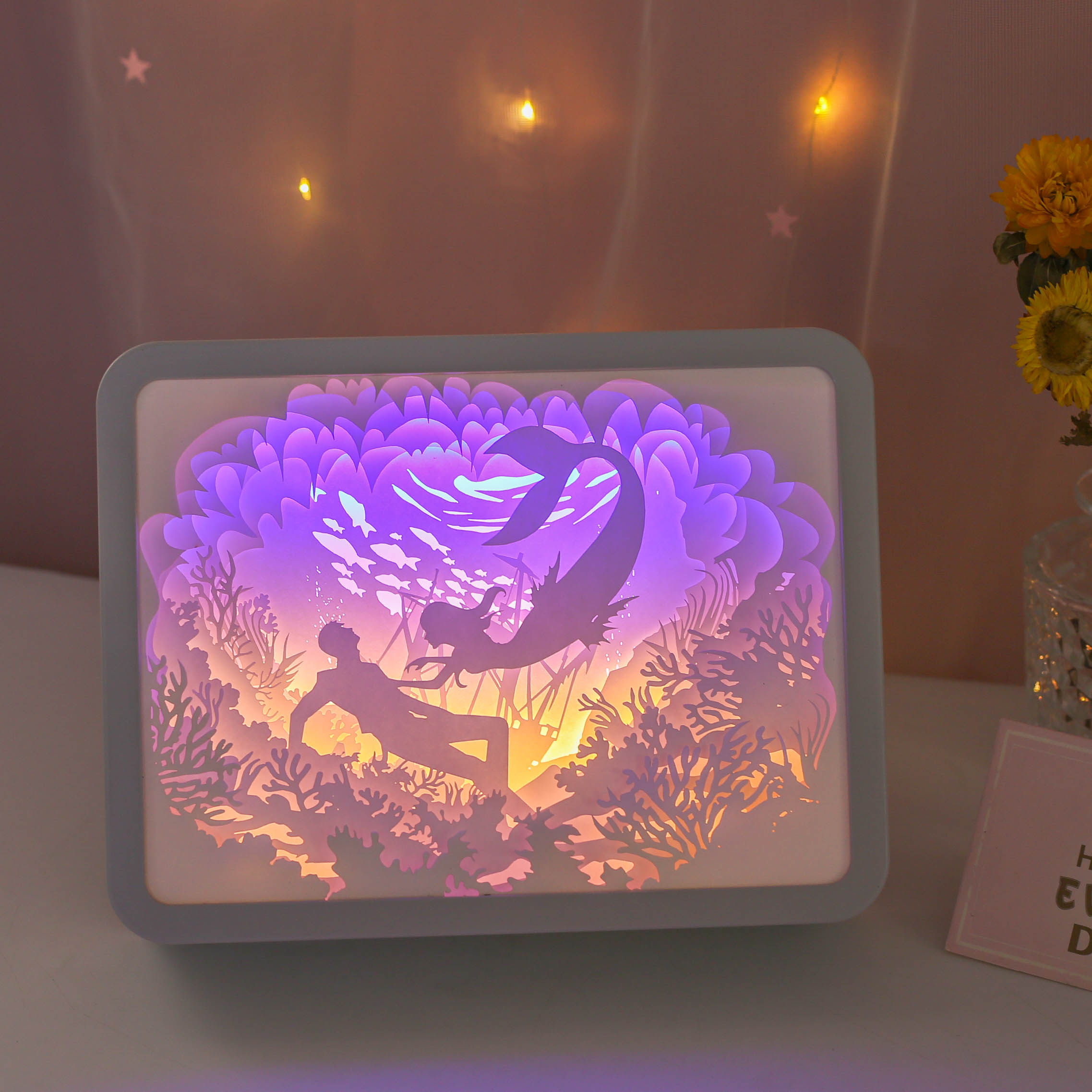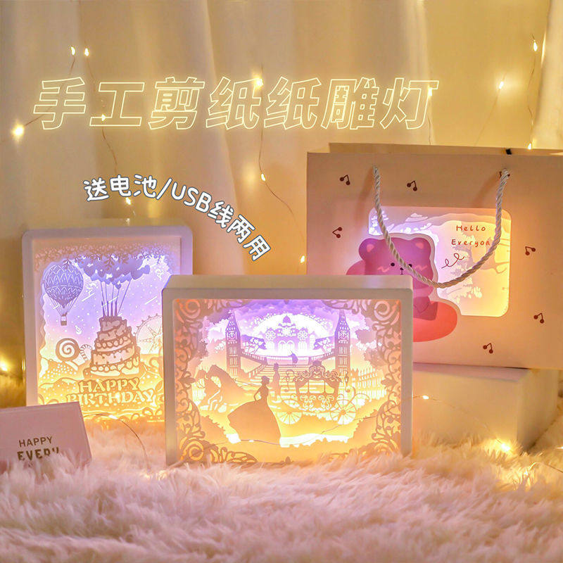 Light and shadow paper carving lamp 3d three-dimensional paper-cut condensing light engraving shadow lamp creative remote control table lamp diy handmade custom gift