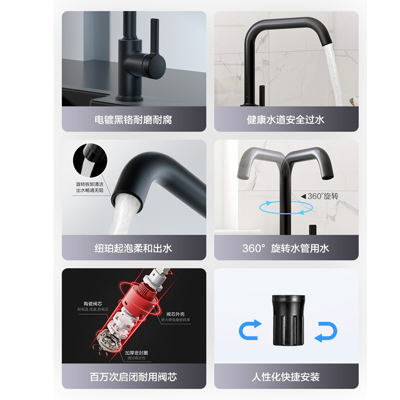 Jiumu official kitchen faucet fine copper elegant black kitchen sink hot and cold rotatable washbasin faucet 33151