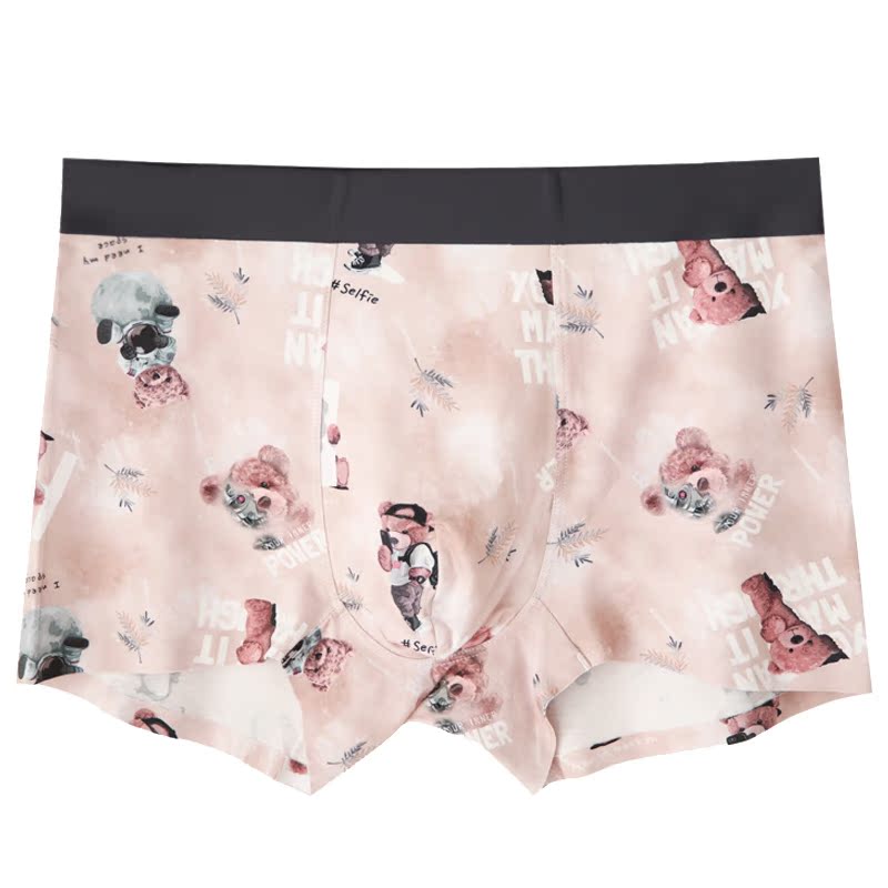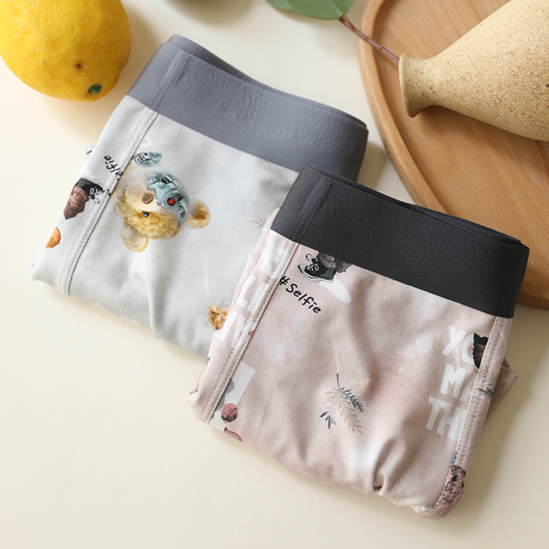 Cute Bear Ism ~ 2 Dress Cute Cartoon Printed Briefs Male Modale Soft And Breathable Four-corner Short Pants/S Damp