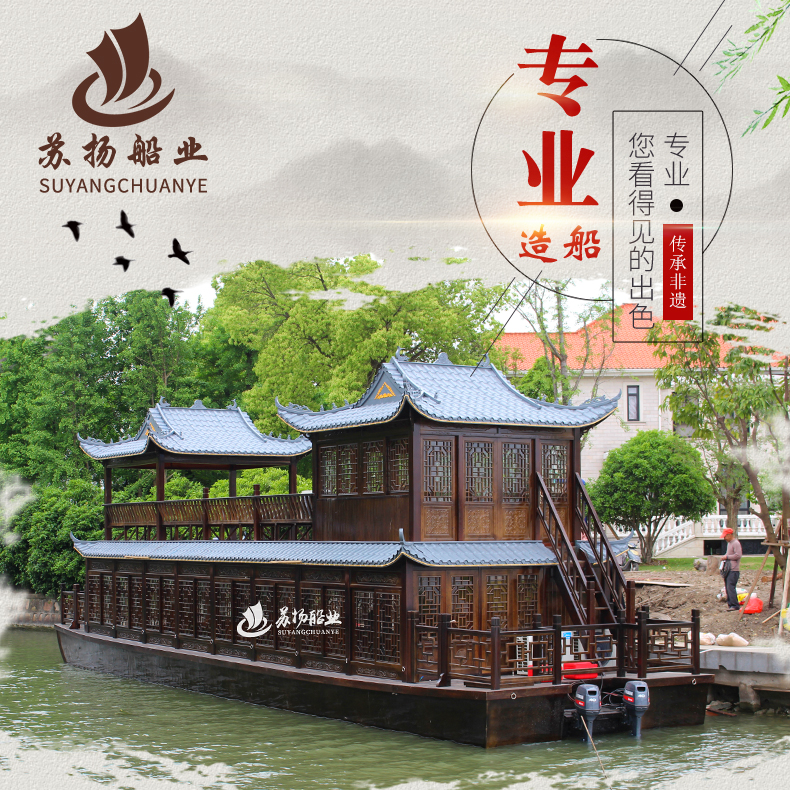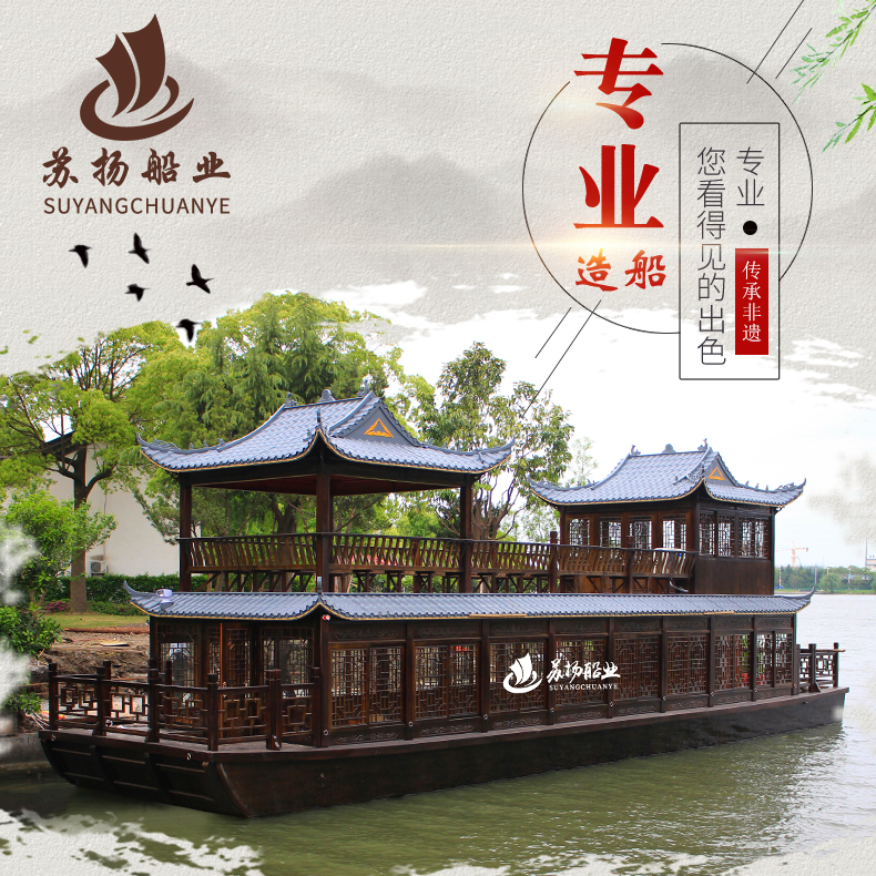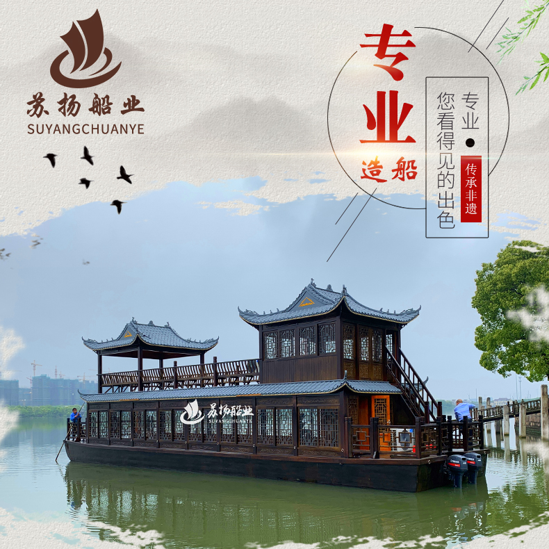 Wooden Boat Painting Boat Boat Water Dining Room Large Scenic Area Double Imitation Antique Glance reception Housing Electric Sightseeing Boat-Taobao