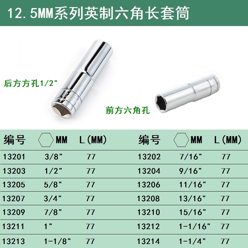 13201 12 5 Inch Long Socket (3 8) 13202 12 5 Inch Long Socket (7 16) 13203 12 5 Inch Long Socket (1 2