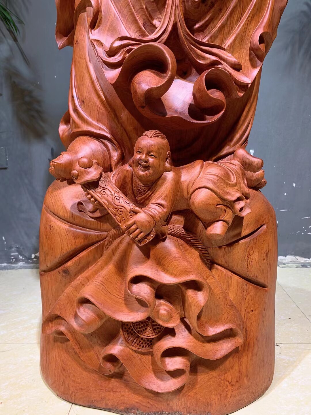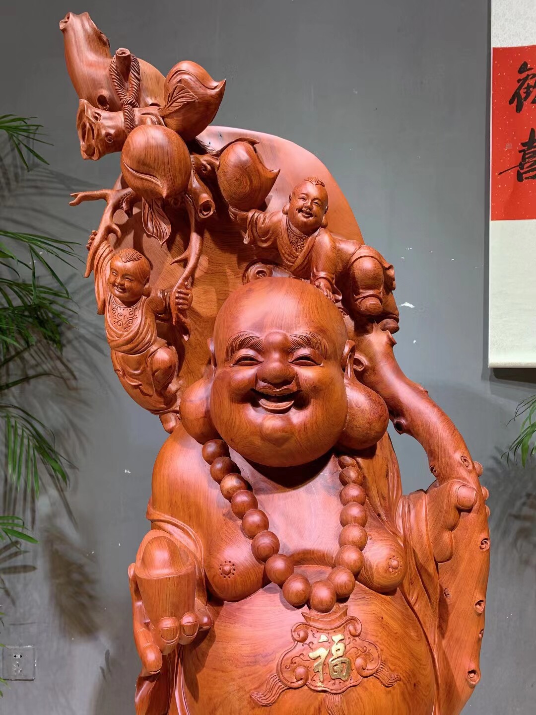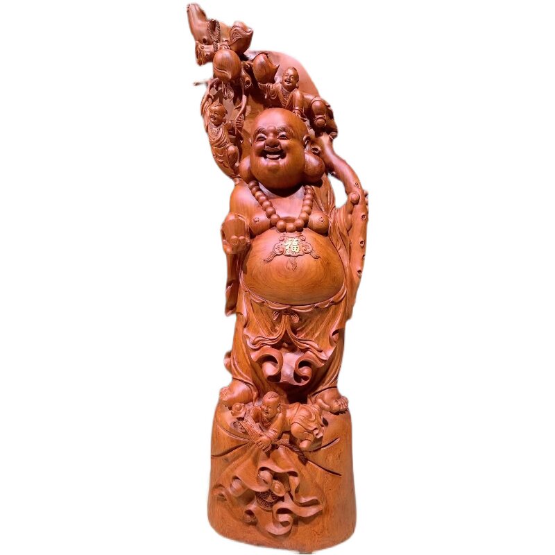 Hot selling spot root carving pendulum pieces of Buddha wood carving red wood cloth bag Millars Brazilian flower pears wood high 195 width 65 thick 60