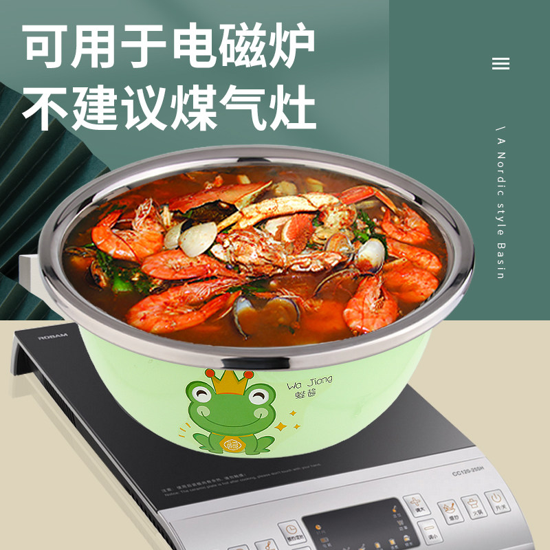 Stainless Steel Basin Home Kitchen and Dough Basin Beaten Egg Basin Knead Basin With Lid Bowl Public Wash Vegetable Basin Colored Basin