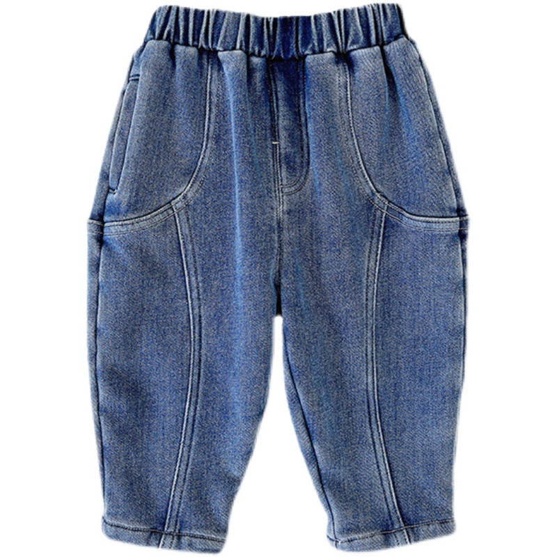Autumn and winter clothes are all-match, handsome, retro, all-match, children's fleece jeans, boys' baby elastic waist pants