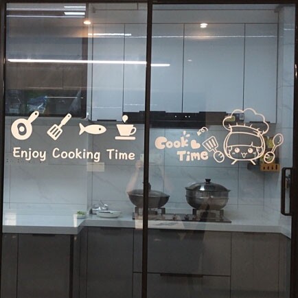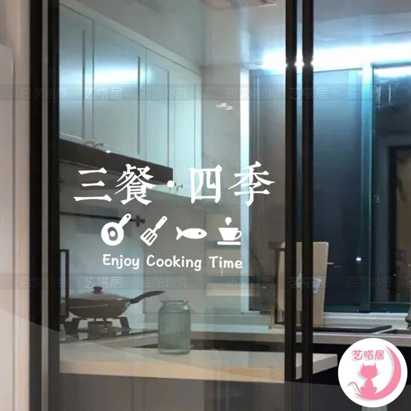 Kitchen glass anti-collision stickers ins three meals four seasons dining room restaurant living room sliding doors and windows decoration creative stickers