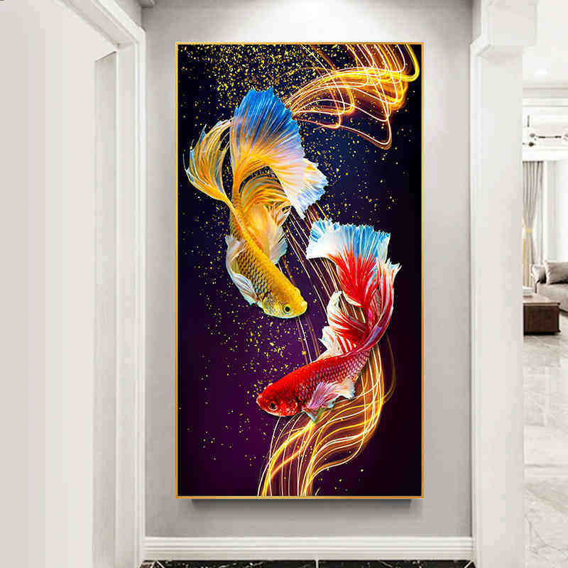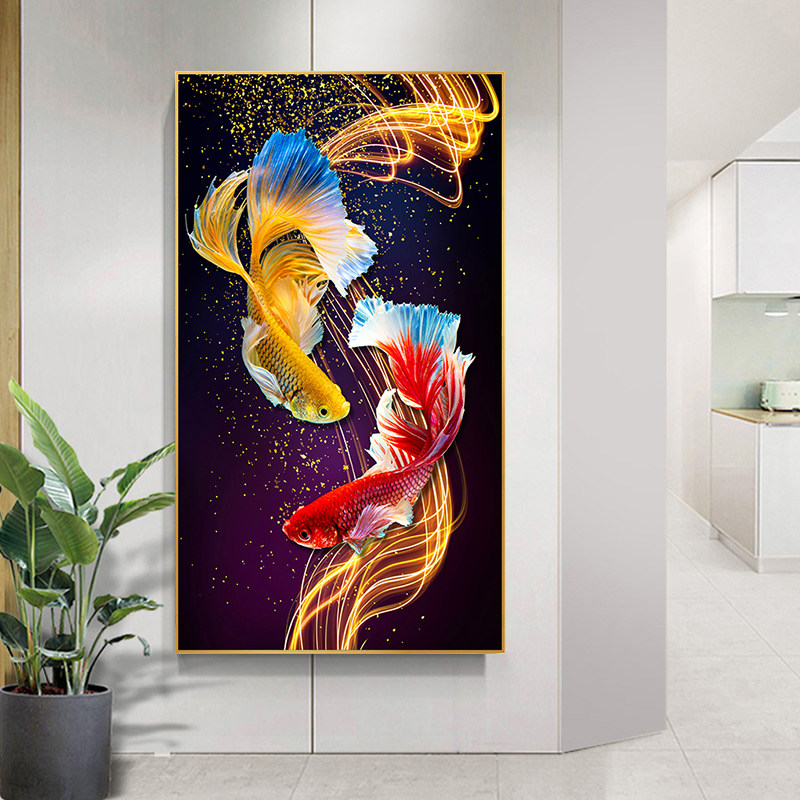 Printed cross embroidered 2022 new line embroidered double strokes of chaejin carp living room Xuanguan significant atmospheric embroidery handmade embroidery