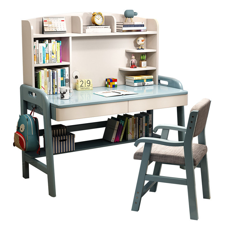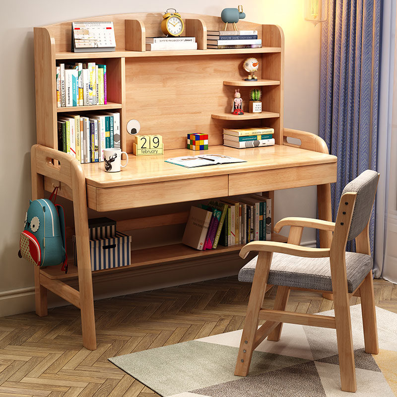 Solid Wood Student Desk Book-Bowl Table Children Writing Table Boys Simple Household School Student Learning Table Chair