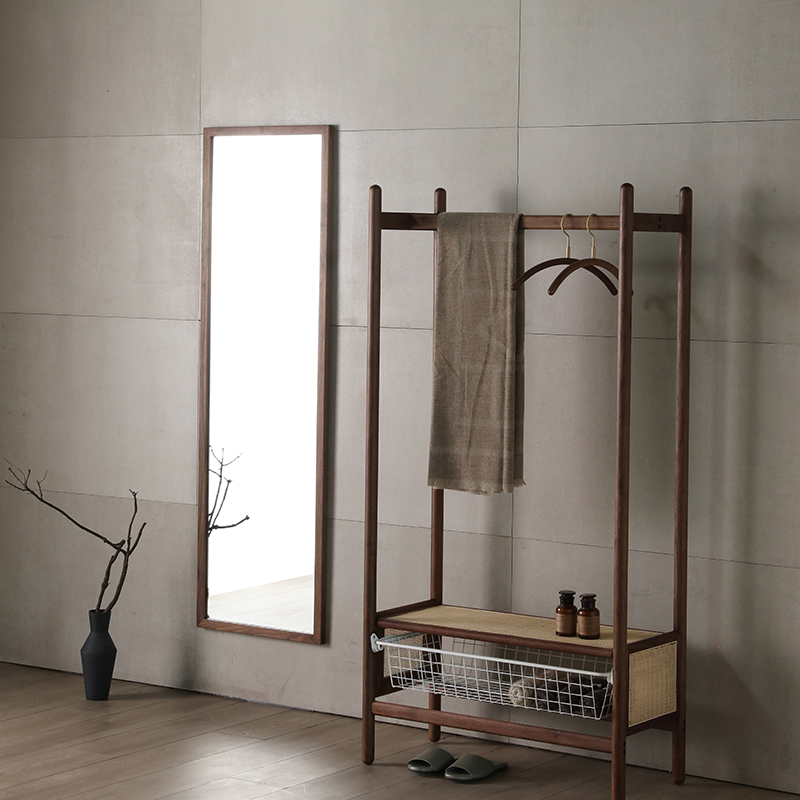 Cross-mouth wood for Nordic solid wood clothes hat rack floor shelve modern minima black walnut wood bedroom hanging hanger
