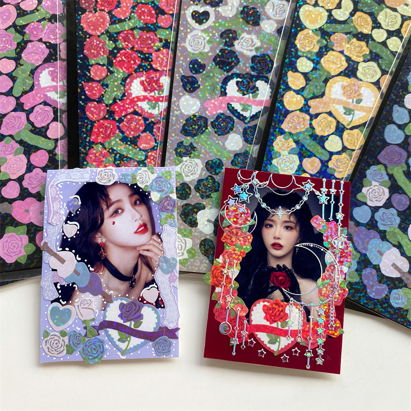 Retro Love Rose Goo Card Sticker Advanced Waterproof Laser Korean Ins Style Decorative Small Pattern Hand Account Set