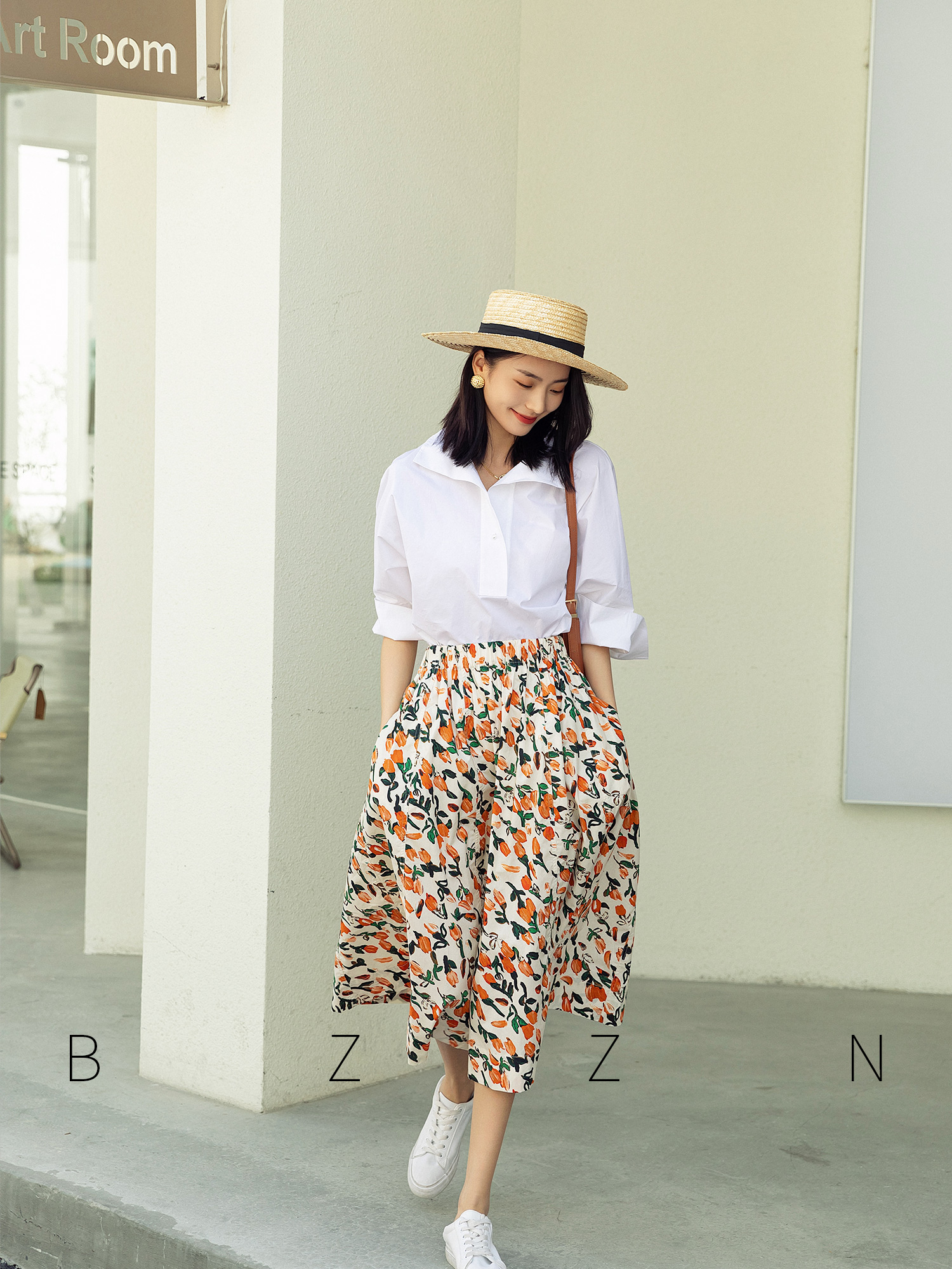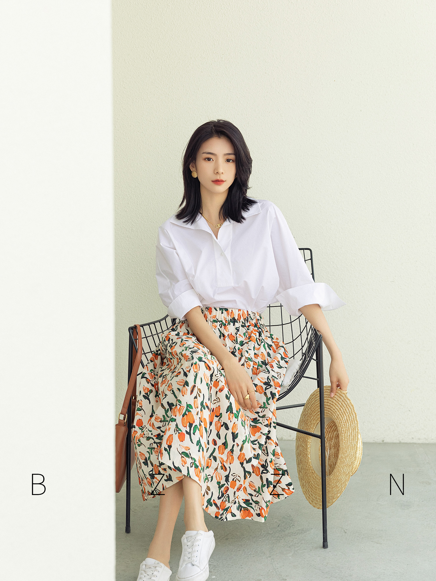 White Shirt Queen C*H* Seal of high quality comb cotton sprinkled off half open collar loose design tops