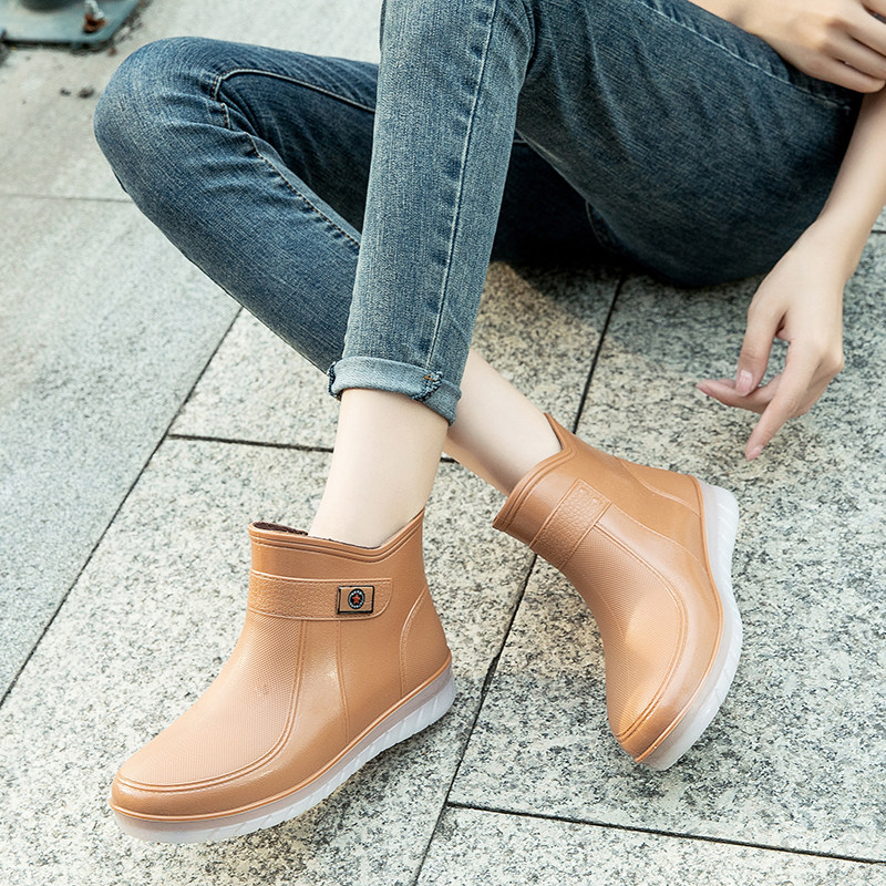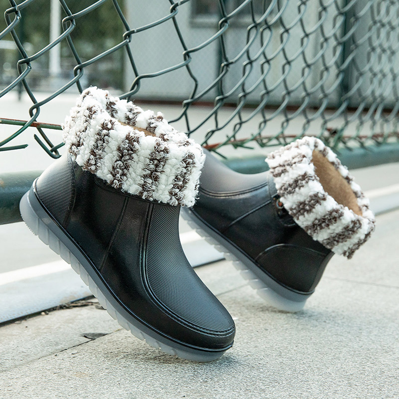 Short Cylinder Fashion Student Korean Version Warm Waterproof Shoes Rain Shoes Rain Boots Women Winter Plus Suede Cotton Water Boots Adult Non-slip Set Shoes