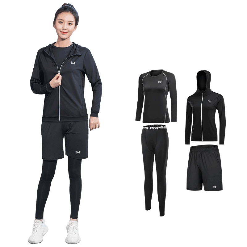 Running sports four-piece suit female quick-drying large size spring and summer fitness clothes room training morning running fat mm yoga
