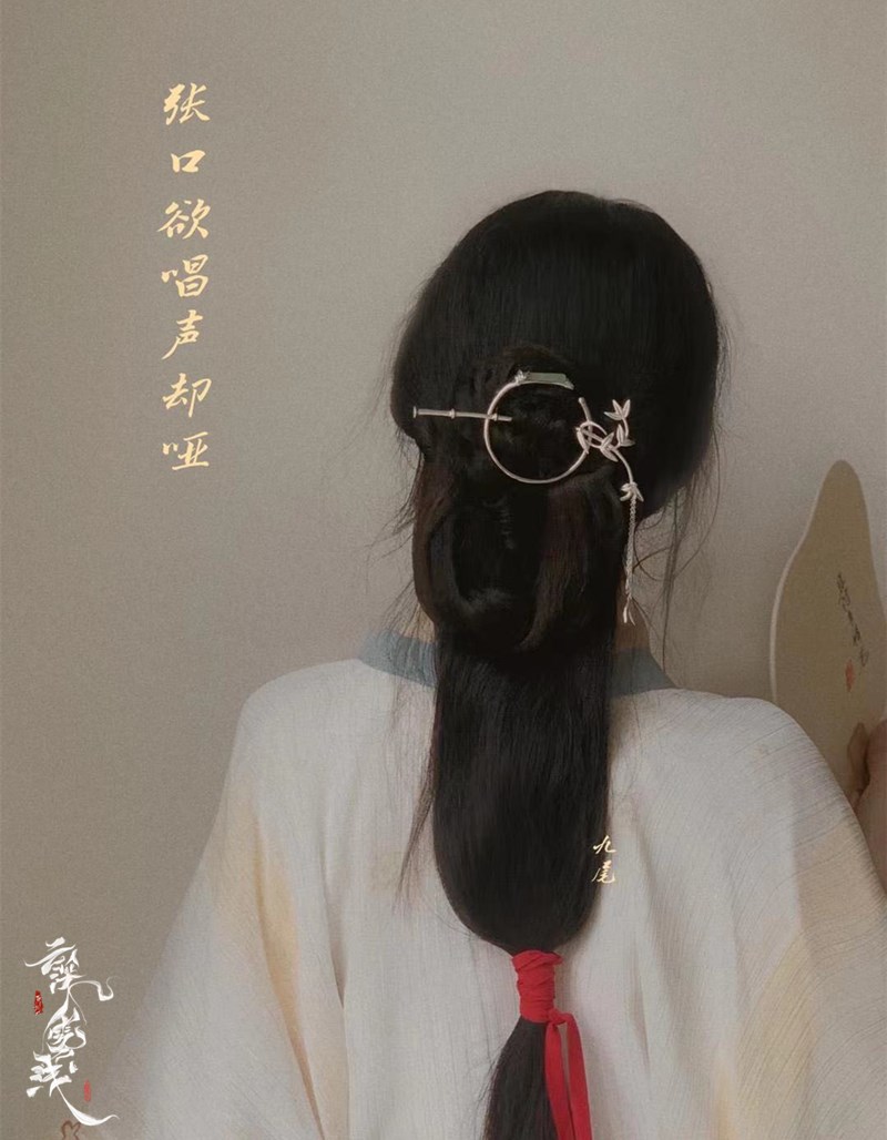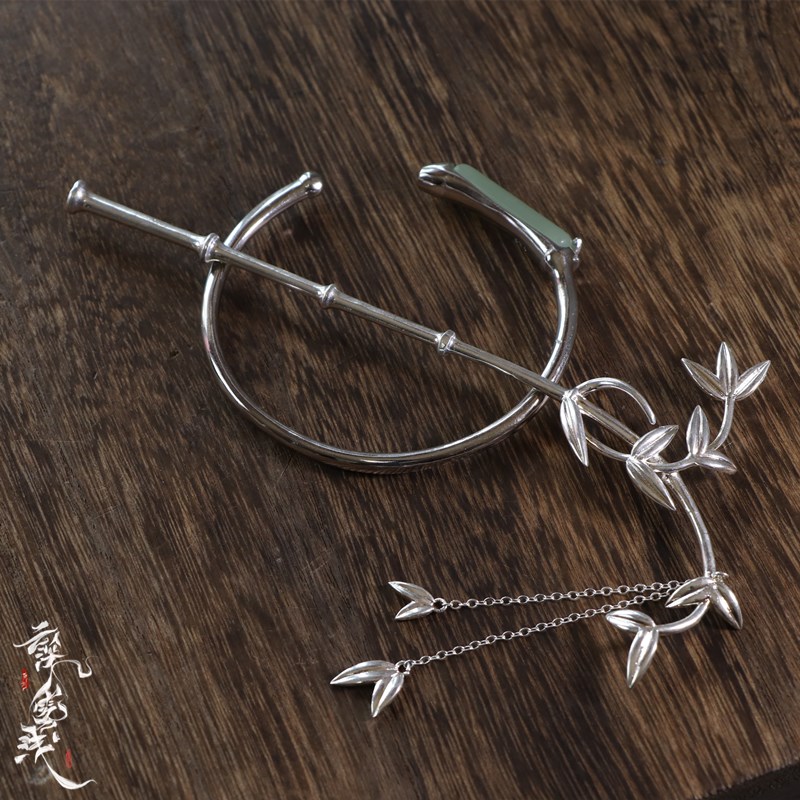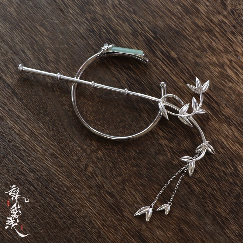 Cloud Deep Mist Light Silver Bamboo with original Han clothes After original Han clothes Pressed Bamboo Leaves with Hairpin Flow Su Step Shake The Ancient Wind And Cold Temperament Hair Accessories