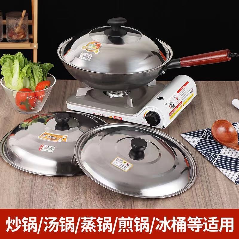 Stainless steel thickened explosion protection lid high temperature resistant universal frying pan frying pan broth pan flat bottom pan iron frying pan lid