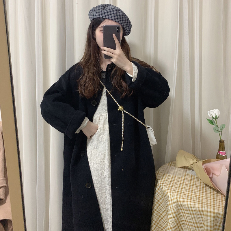2021 Mao jacket women's new autumn and winter small sub-Hepburn Wind, in the long version of the Thickened Japan
