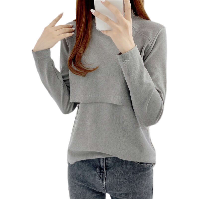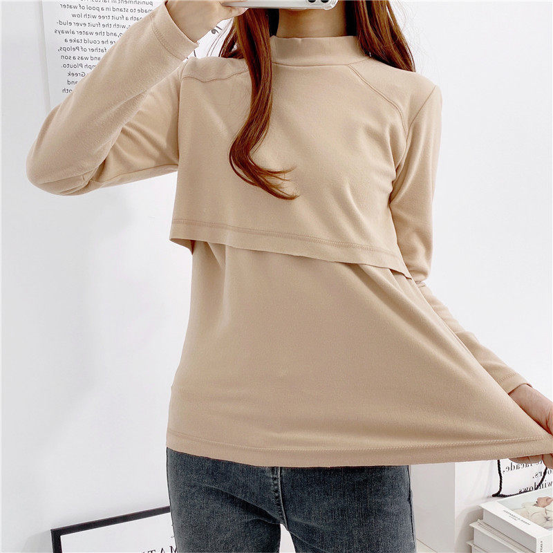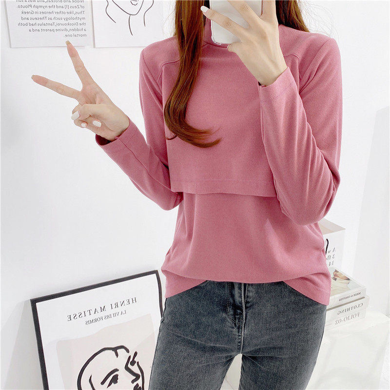 High Collar Laced Clothing Autumn Jersey Dush Warm Laced Clothing Blouses Pregnant pregnant women Covered Head T-Shirt Postpartum Month postpartum Long sleeves