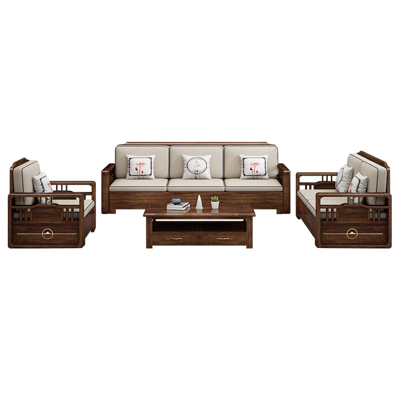 Walnut solid wood sofa combination set winter and summer dual-use living room small apartment with chaise corner new Chinese style sofa