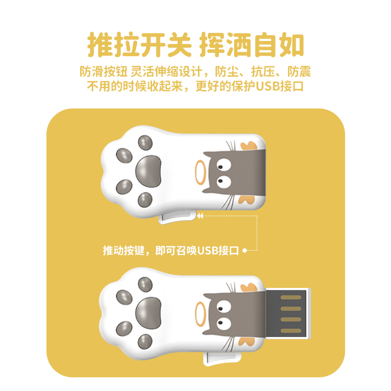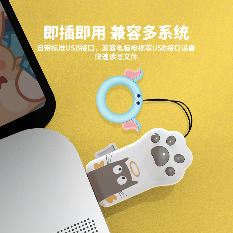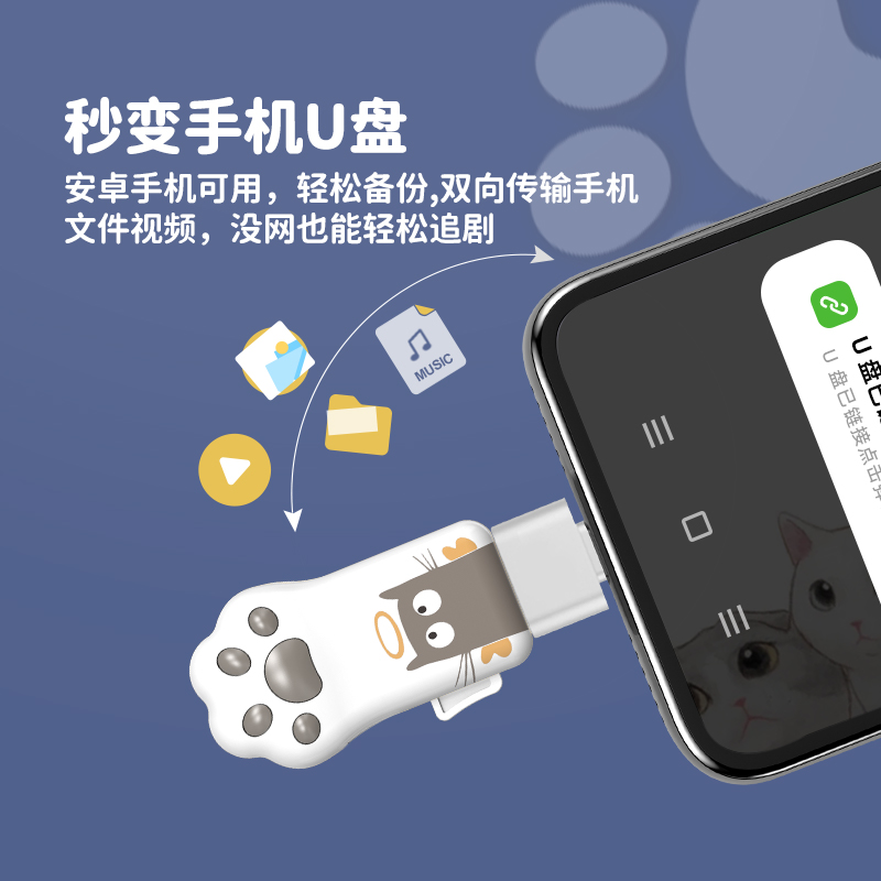 (Baihui) High speed drive 128g large capacity mobile phone computer dual use girl cute cartoon creative mini-student cat claw USB drive USB drive mobile phone office gift personally customized