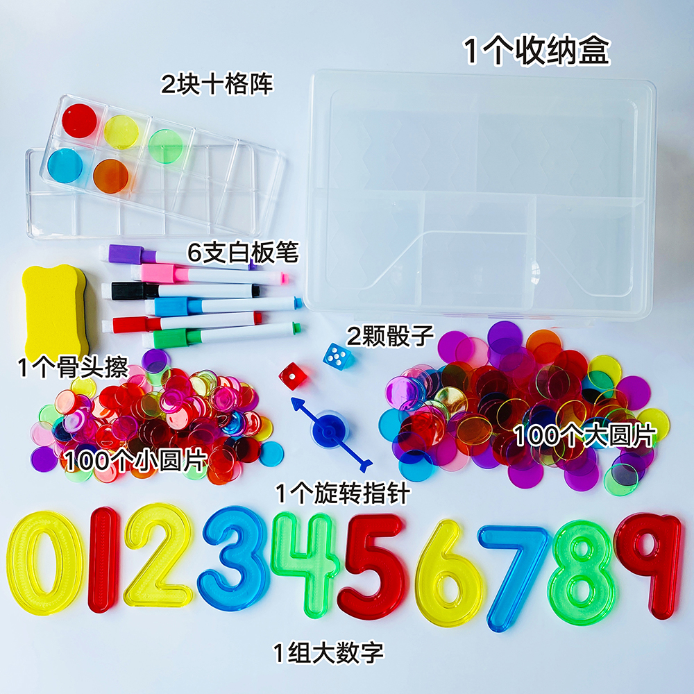 Children's mathematics enlightenment teaching aids addition and subtraction ten grid array transparent color small disc large number children's early education toys