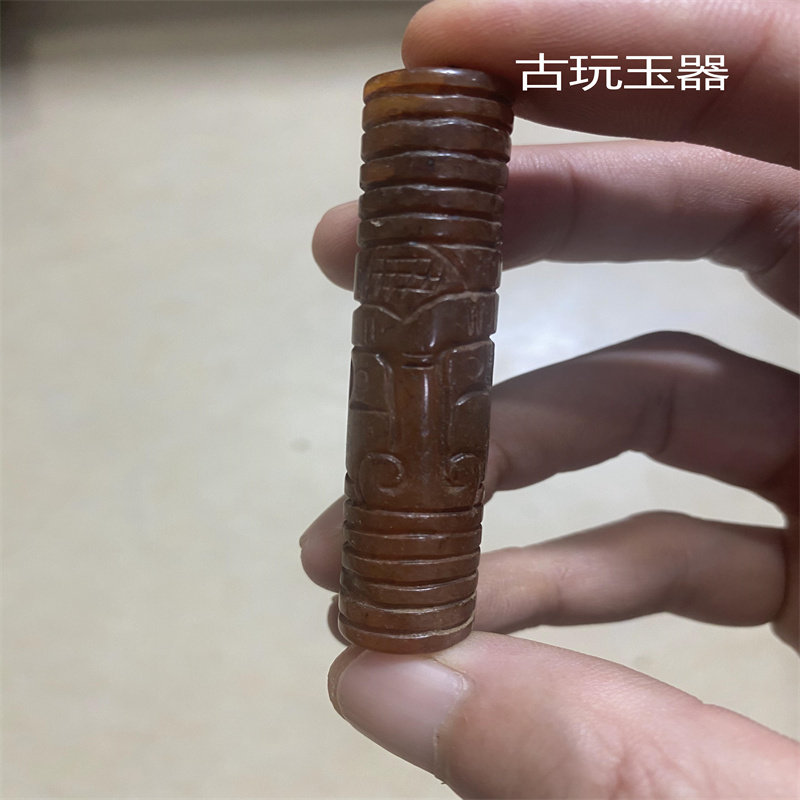 Jade dragon gift ware brown tube swing piece accessories jade brown imitation new old stone tool to make a piece of red mountain culture jade long jade Cong tube