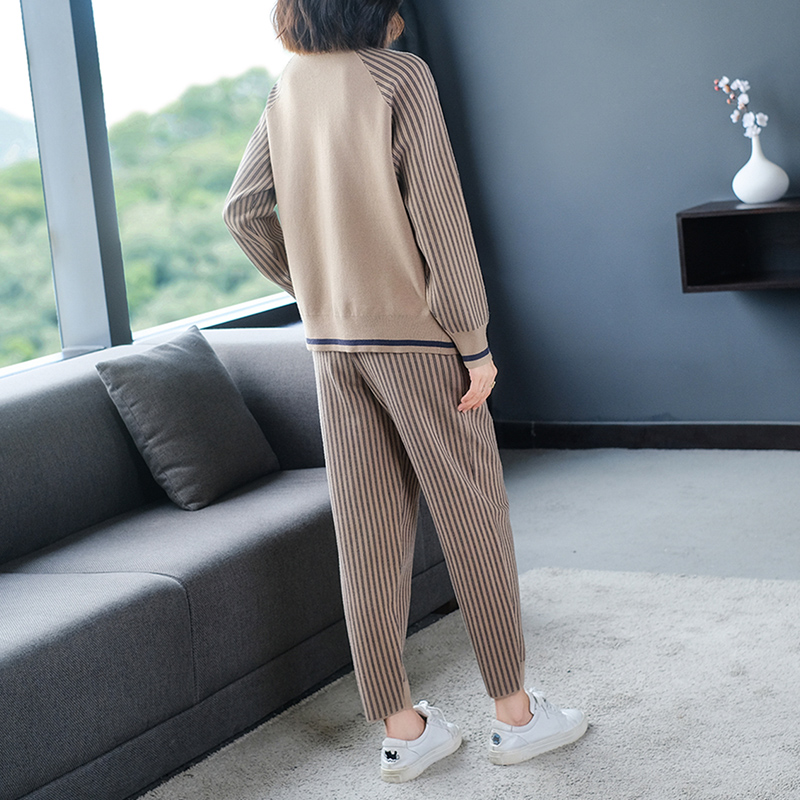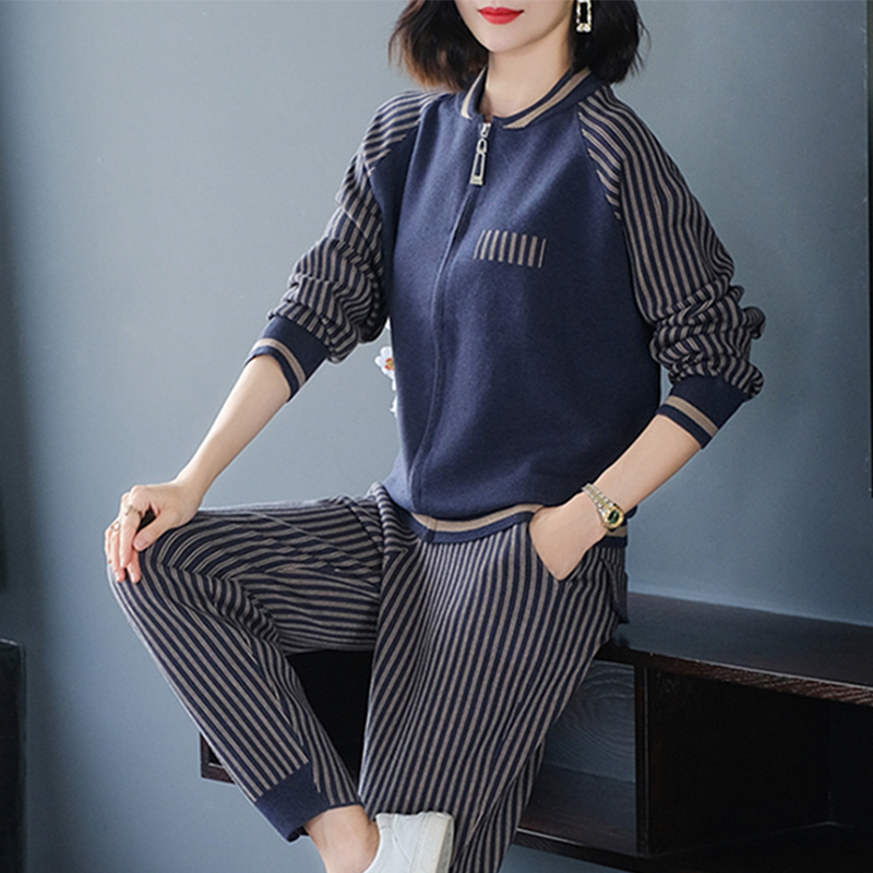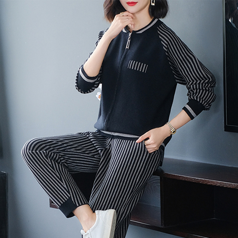 Leisure Sports Suit Women's Spring Autumn Season High End Large Size Size Women's Dress Foreign Pie's Aging Brand Sportswear knit Two sets