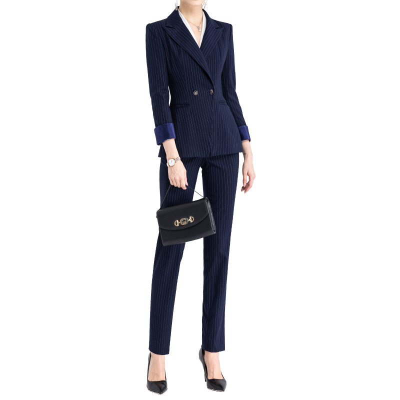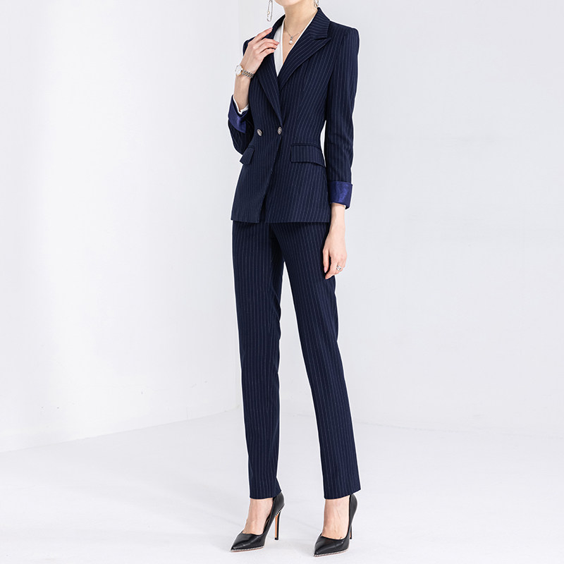 Spring and Autumn Professional Suit Women's Suit Workwear Women's Korean Version Fashion Temperament Goddess Fan Formal Dress Interview Striped Suit