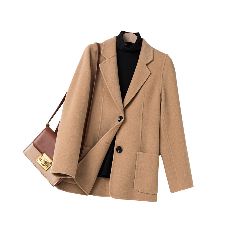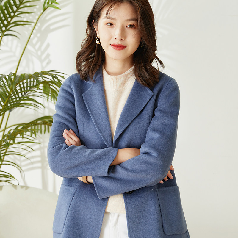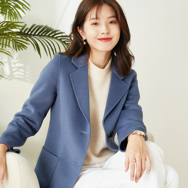 Double-sided cashmere suit jacket women's short section 2021 autumn and winter high-end commuter woolen coat woolen suit