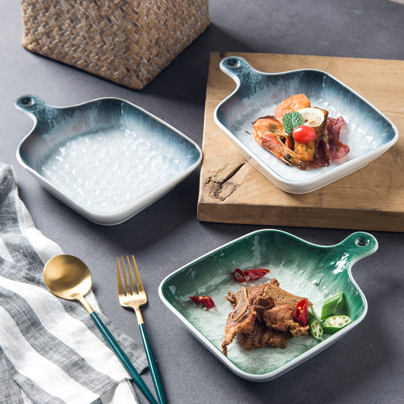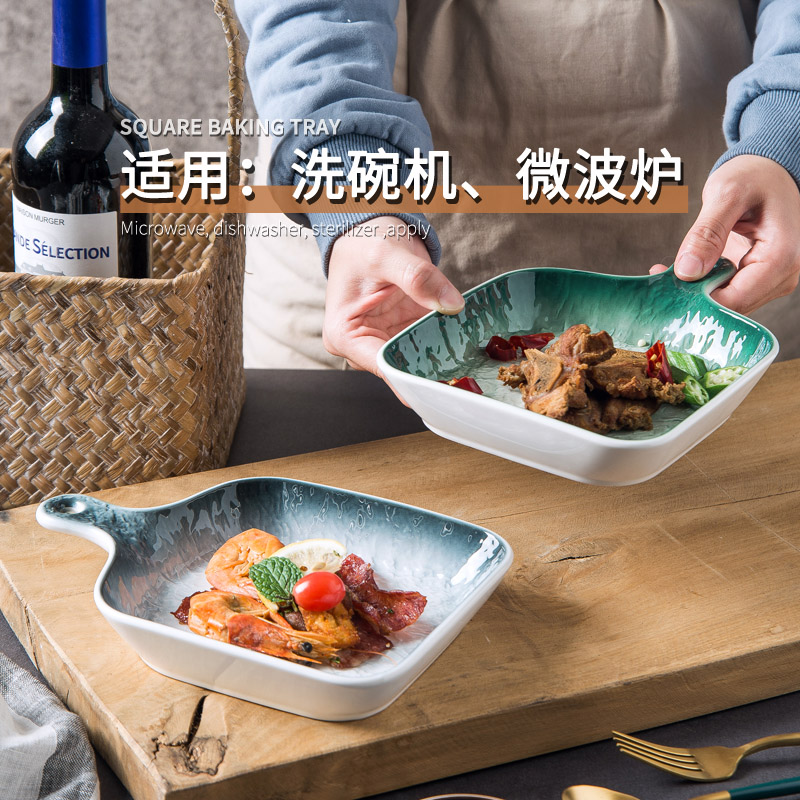Nordic Creative Baking Disk Net Red Baking Dish Household Plate Breakfast Salad Under-glazed Color Plate Ceramic Barbecue