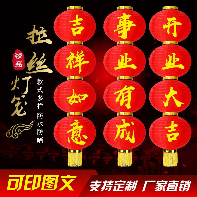 Chinese New Year Decoration Brushed Red Lantern String Folding Advertising New Year Pendant Dance Props Winter Melon Lantern Baifu Phnom Penh