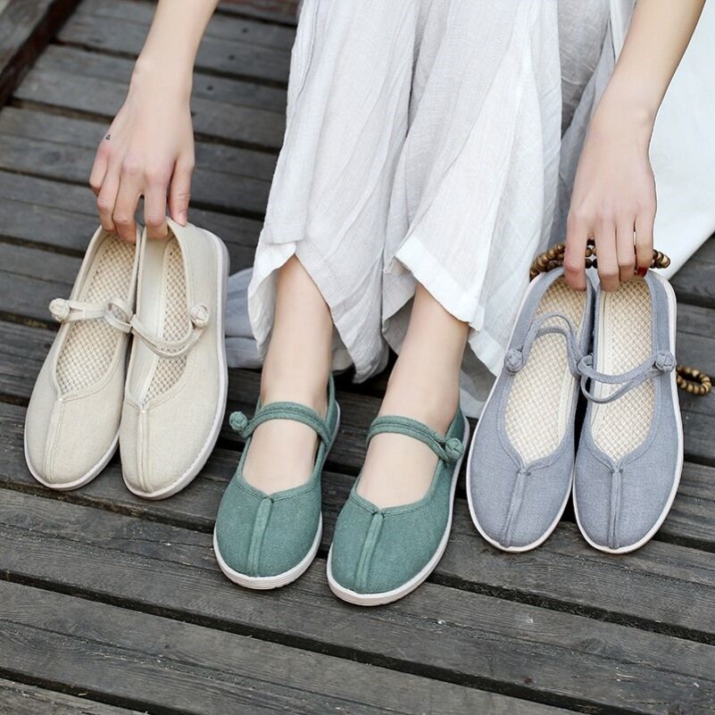 Shoes with cheongsam tea clothes meditation Hanfu women's soft flat retro Chinese style Zen casual embroidered cloth shoes