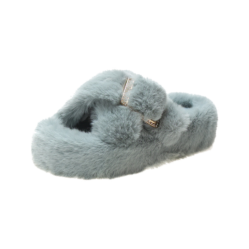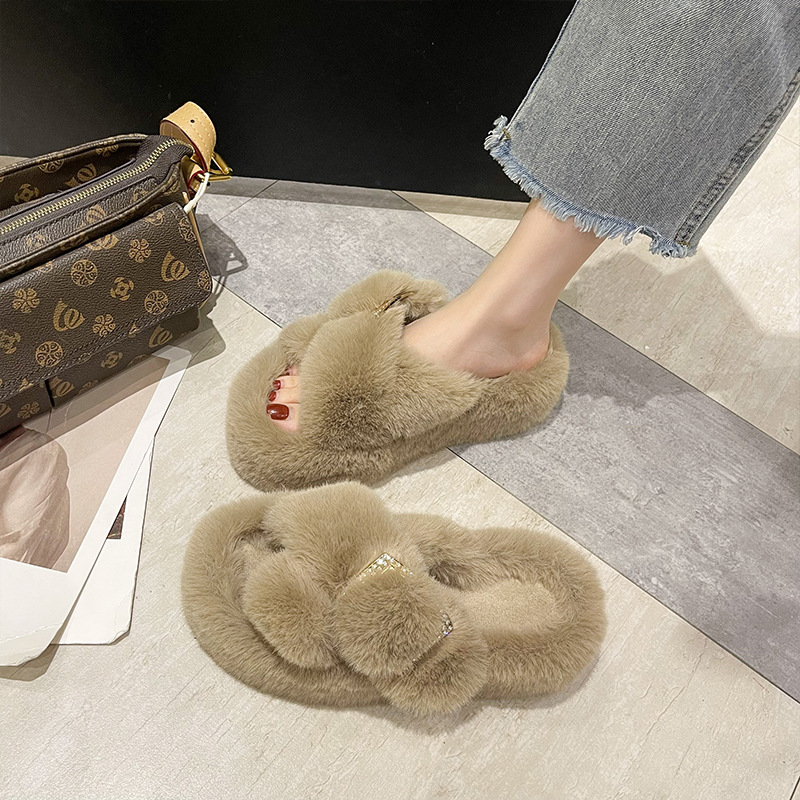 Japanese thick-bottomed cross-haired slippers for women's outer wear autumn and winter new all-match non-slip home net red cotton slippers
