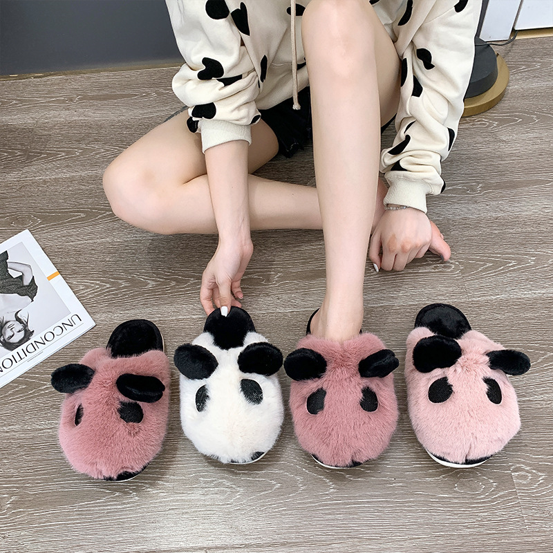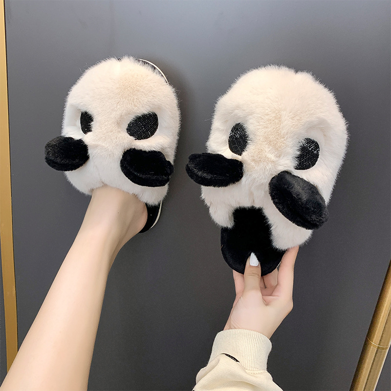 Japanese autumn and winter Baotou cotton slippers women wear cartoon panda home warm indoor cute fur slippers