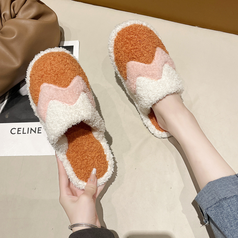 Japanese simple coral fleece cotton slippers women's mute soft bottom Baotou home confinement shoes plush fleece slippers