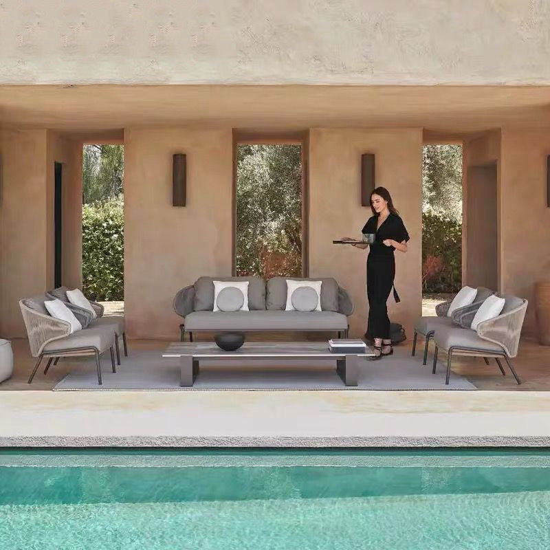 Nordic Outdoor Rattan Sofa Patio Room Outdoor Balcony Sofa Tea Table Combo Villa Hotel Casual Rope Choreography