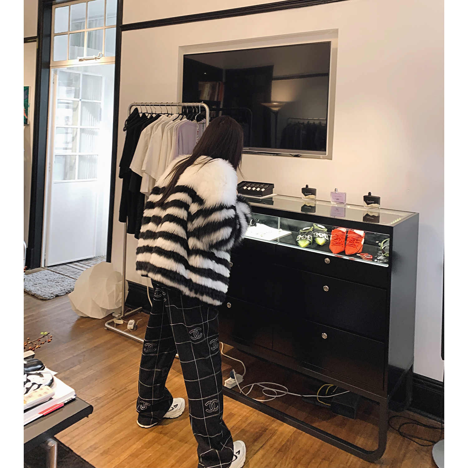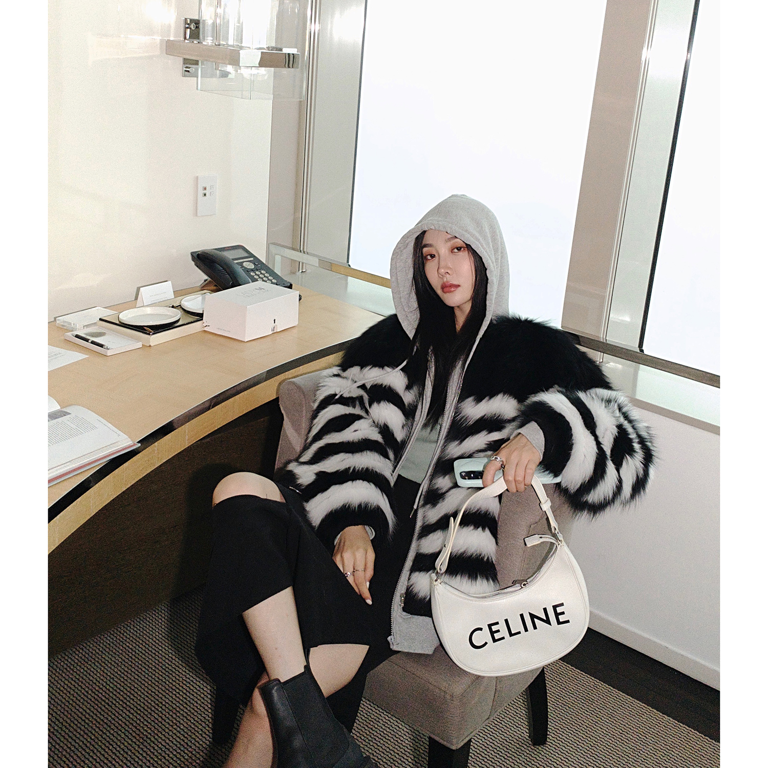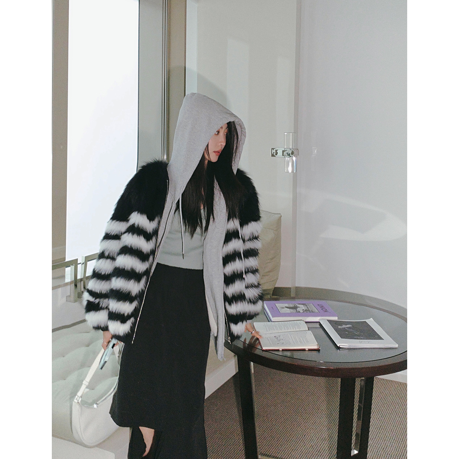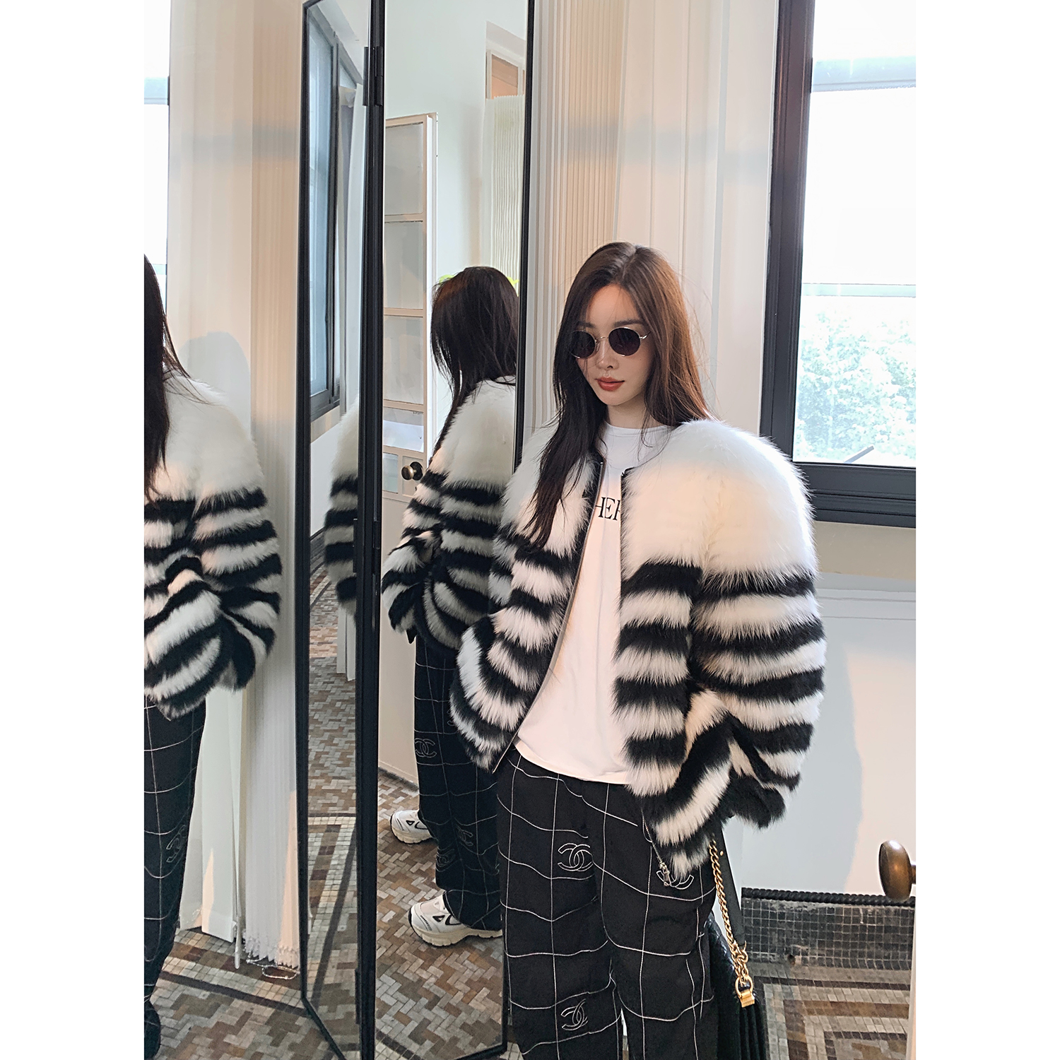 Fu Zhien zebra zebra black and white color contrast horizontal car craft fox fur young fur women's coat 2021 new