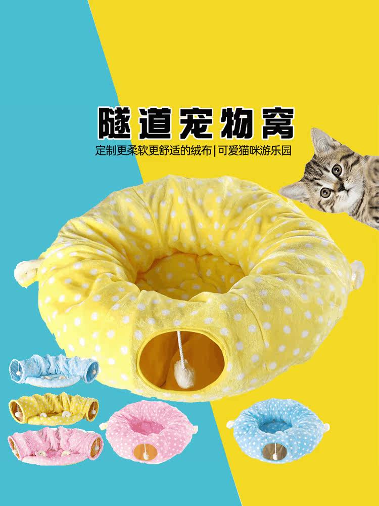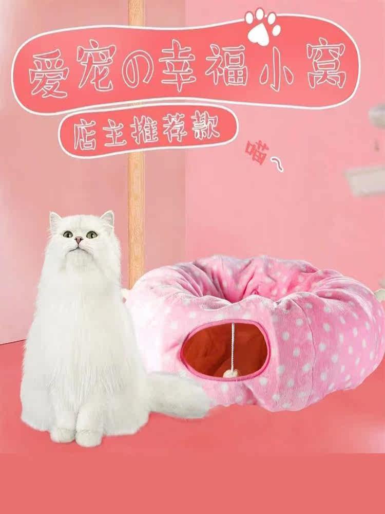 Cat litter four seasons universal cat tunnel channel folding cat supplies cage with removable and washable funny cat toys semi-closed
