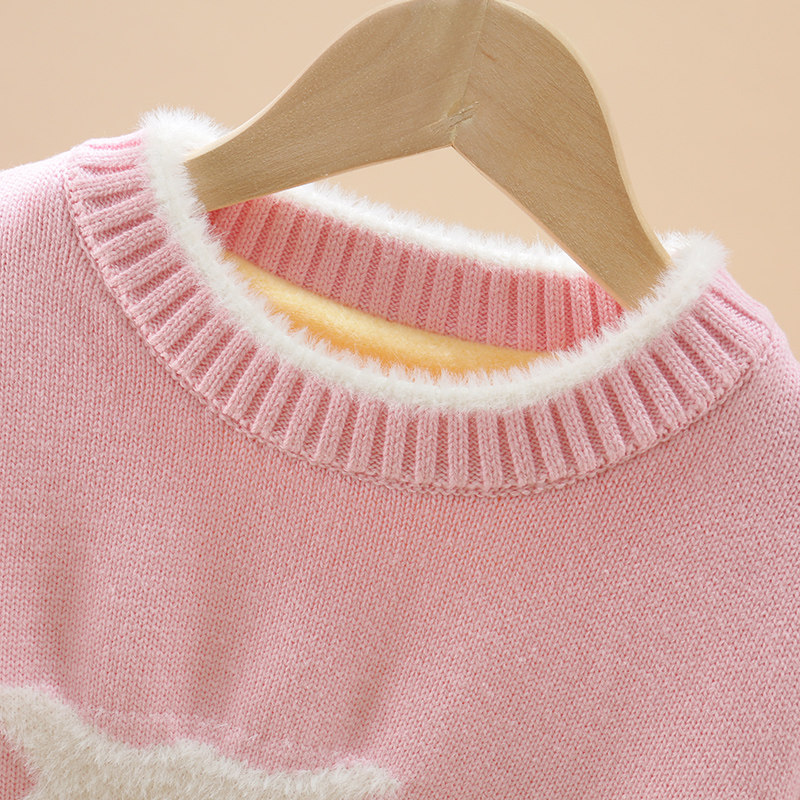 Girls sweater autumn and winter children's middle and big boys and girls plus velvet thickened foreign style knitted sweater pure cotton sweater sweater