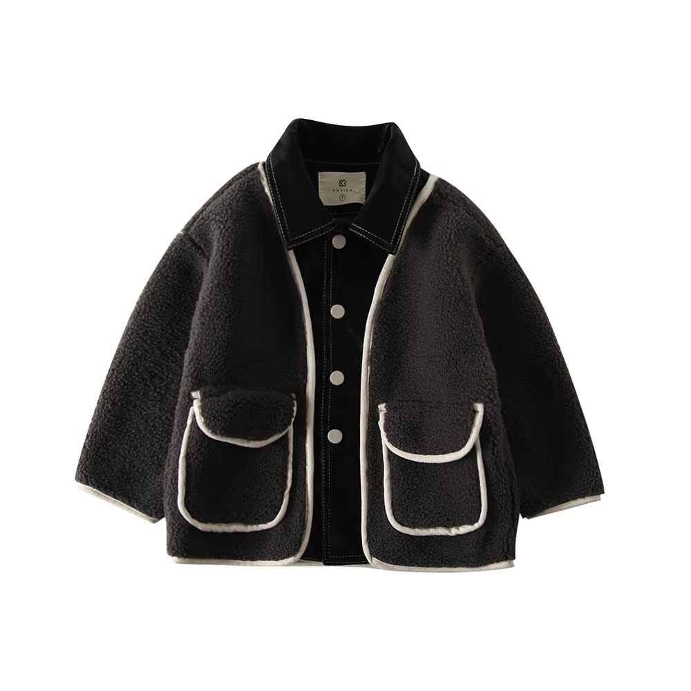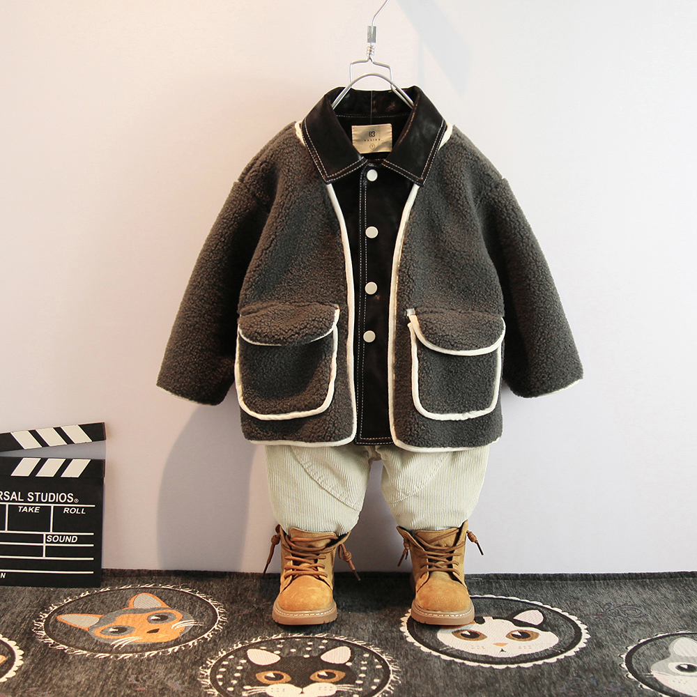 Children's Korean version of autumn and winter woolen coat 2021 winter new children's clothing lamb velvet jacket children's Western style thick top trendy