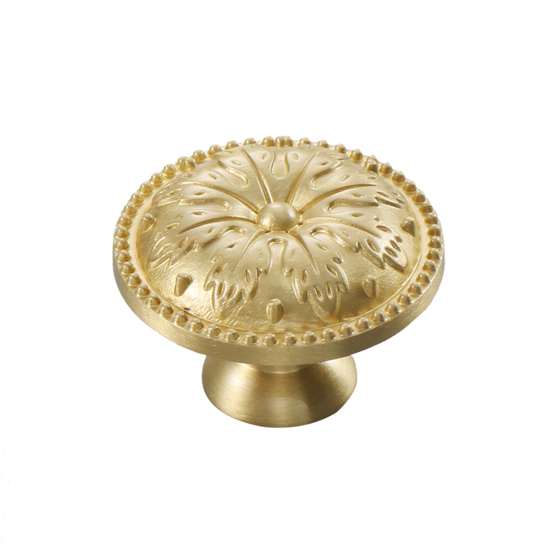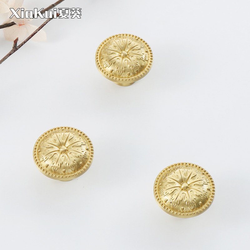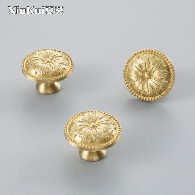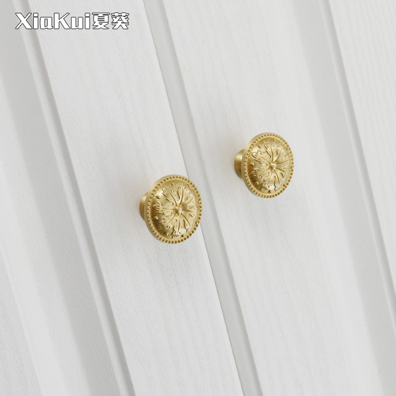 Xia Kui light luxury French wardrobe single hole handle pure copper solid European pattern brass drawer cabinet door handle all copper