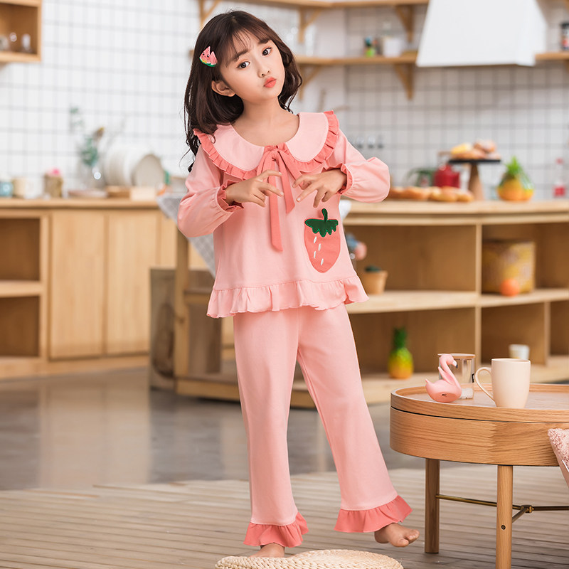 Tide girl's pajamas spring and autumn pure cotton 2023 big girl sleeves cute cartoon home suit suit