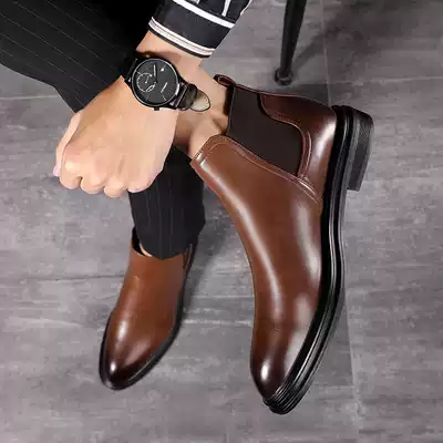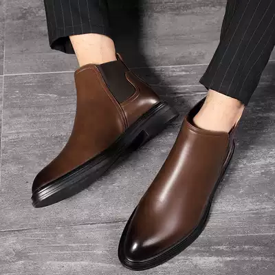 Martin boots men's mid-tube autumn and winter boots Korean version of the trend British retro sleeve high-barrel leather shoes men Chelsea boots